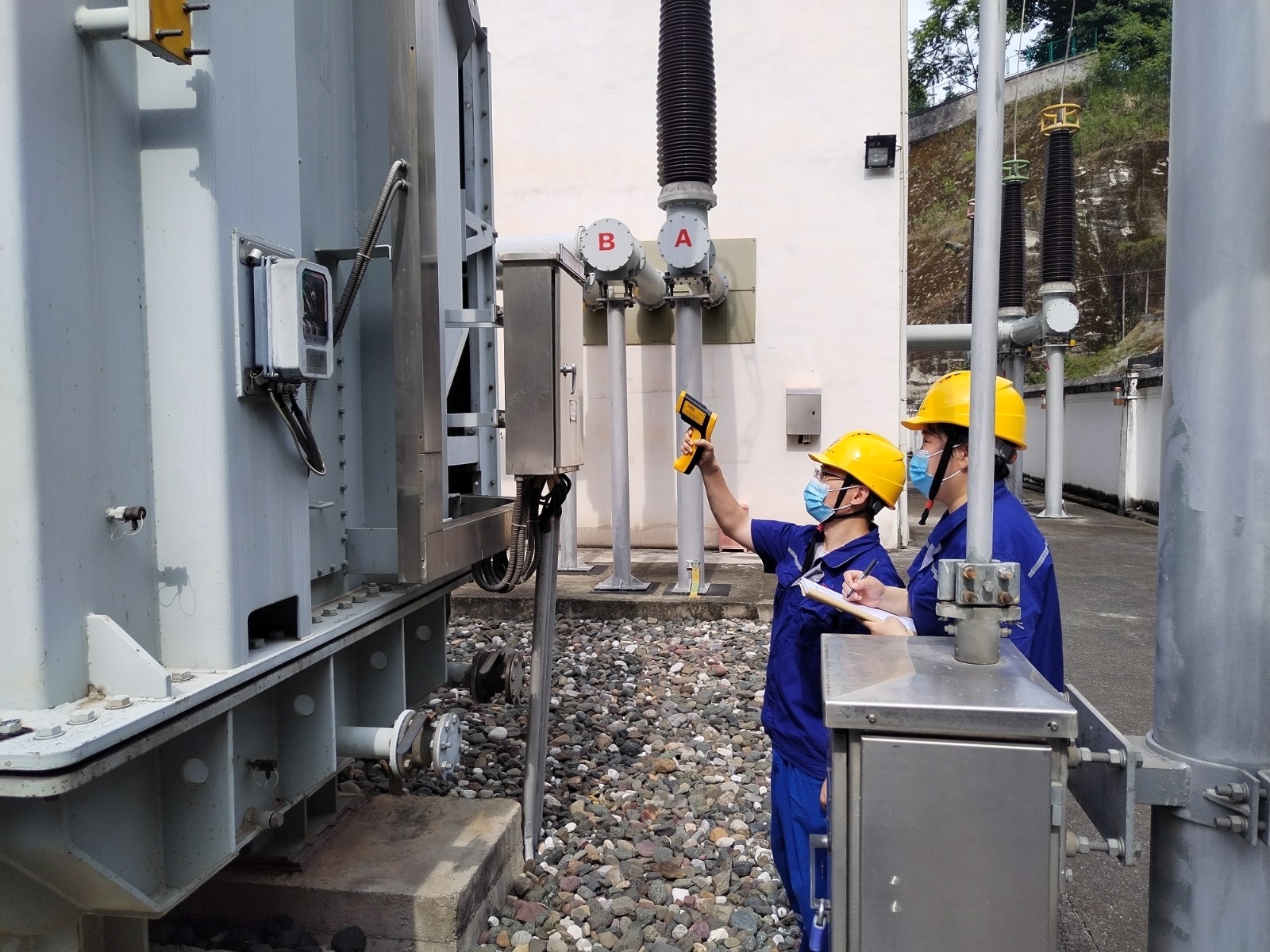 受涼山州氣候影響,較大晝夜溫差給玉田電站設(shè)備穩(wěn)定運(yùn)行增添雙重負(fù)荷考驗(yàn)?!皩幾鰺o(wú)用功,不留一隱患?!比胂囊詠?lái),廠長(zhǎng)孫萬(wàn)慶始終堅(jiān)持每日帶領(lǐng)維護(hù)人員在中午高溫時(shí)段到廠區(qū),大壩等對(duì)電力設(shè)備設(shè)施開(kāi)展帶電檢測(cè)和紅外測(cè)溫。7月11日午時(shí),1號(hào)主變C相低壓側(cè)導(dǎo)管突然出現(xiàn)輕微滲油現(xiàn)象,維護(hù)人員頭頂烈日,“汗”衛(wèi)堅(jiān)守在1號(hào)主變前,精心監(jiān)視滲油狀況,研討避峰消缺方案,中控室監(jiān)控人員加強(qiáng)遠(yuǎn)方監(jiān)視,奮戰(zhàn)9小時(shí),奮力保供電。