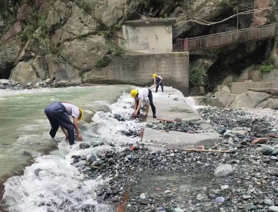 連日驟減的來(lái)水量迫使天彭電力鳳鳴湖水庫(kù)水位只能保持在低位運(yùn)行。此刻,對(duì)保供者來(lái)說(shuō),每一滴來(lái)水都彌足珍貴,而做好引水工作就成為了保障發(fā)電生產(chǎn)和城區(qū)供水的重中之重。天彭電力上下聯(lián)動(dòng),全員作戰(zhàn),沙金車(chē)間、鳳鳴橋車(chē)間一線堅(jiān)守責(zé)任到崗、迅速行動(dòng),頂著烈日清理底格欄柵壩壩面砂石、庫(kù)區(qū)進(jìn)水閘浮渣和前池淤積物,嚴(yán)格執(zhí)行“每日一小撈、三日一大撈、洪水天天撈”制度,做到多引水和保水源“兩手抓、兩手硬”,從源頭上守住保水保電的“生命線”。