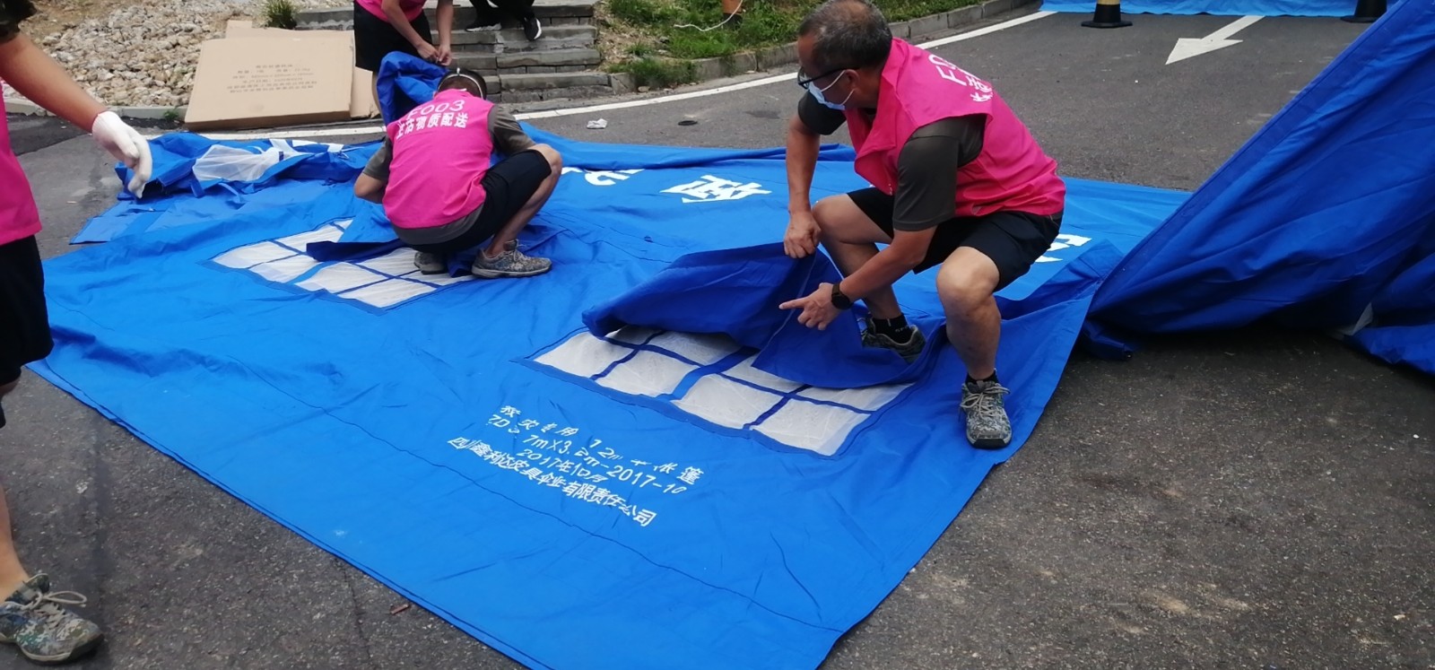 在當(dāng)?shù)匾咔榉揽刂笓]部的帶領(lǐng)下,王成勇、祝長青,身披“志愿紅”,深入封控區(qū)域,從晨光熹微到燈火闌珊,一整天都是后背全濕,每一天都是腰酸背痛。但他們明白,“哪里需要就沖向哪里”。二人先后9次進入高風(fēng)險區(qū)搭建應(yīng)急帳篷,為的是這一頂頂帳篷能夠為來自四面八方、各行各業(yè)的志愿者們遮風(fēng)擋雨,每天一趟趟一袋袋的蔬菜、肉、米、油,讓當(dāng)?shù)鼐用衽c游客每天都能夠安心避疫。