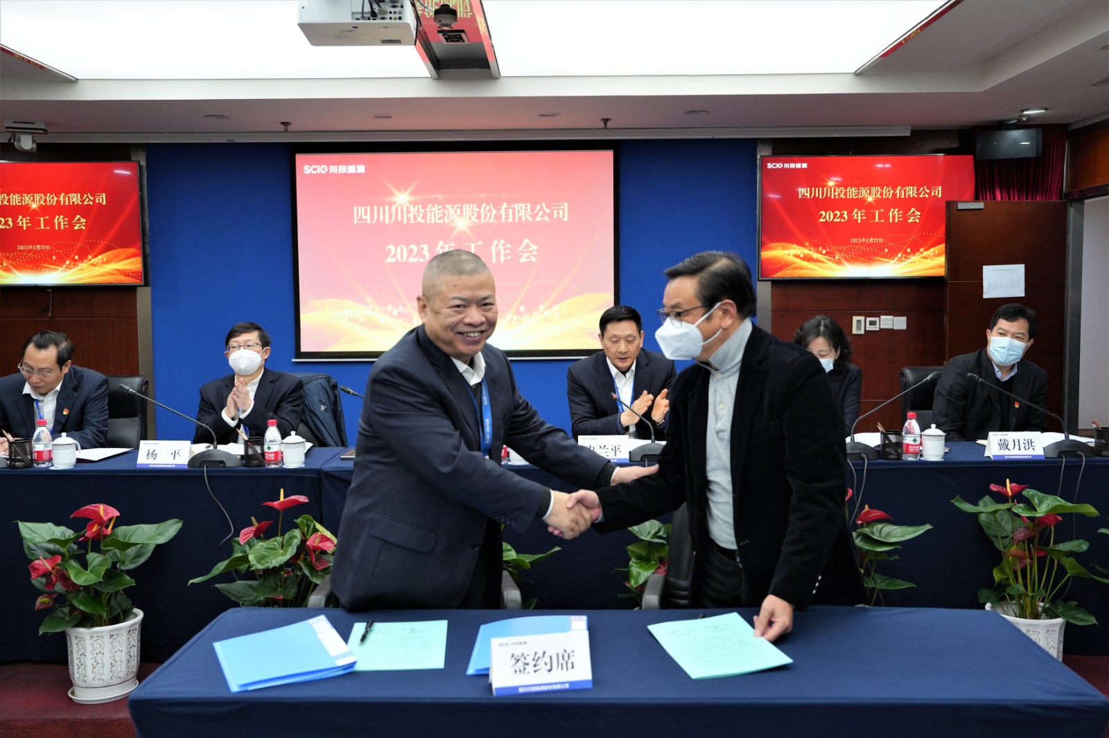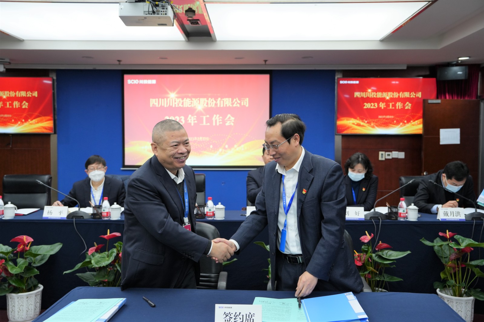 會上,楊洪與所屬企業(yè)負責(zé)人代表簽署了《經(jīng)營業(yè)績責(zé)任書》《安全生產(chǎn)、環(huán)境保護工作目標責(zé)任書》;冉蘭平宣讀2022年度優(yōu)秀員工表彰通報;黨委委員、副總經(jīng)理、總法律顧問楊平作2022年安全環(huán)保工作總結(jié)及2023年重點工作安排;黨委委員、財務(wù)總監(jiān)劉好傳達川投集團2023年工作會精神。