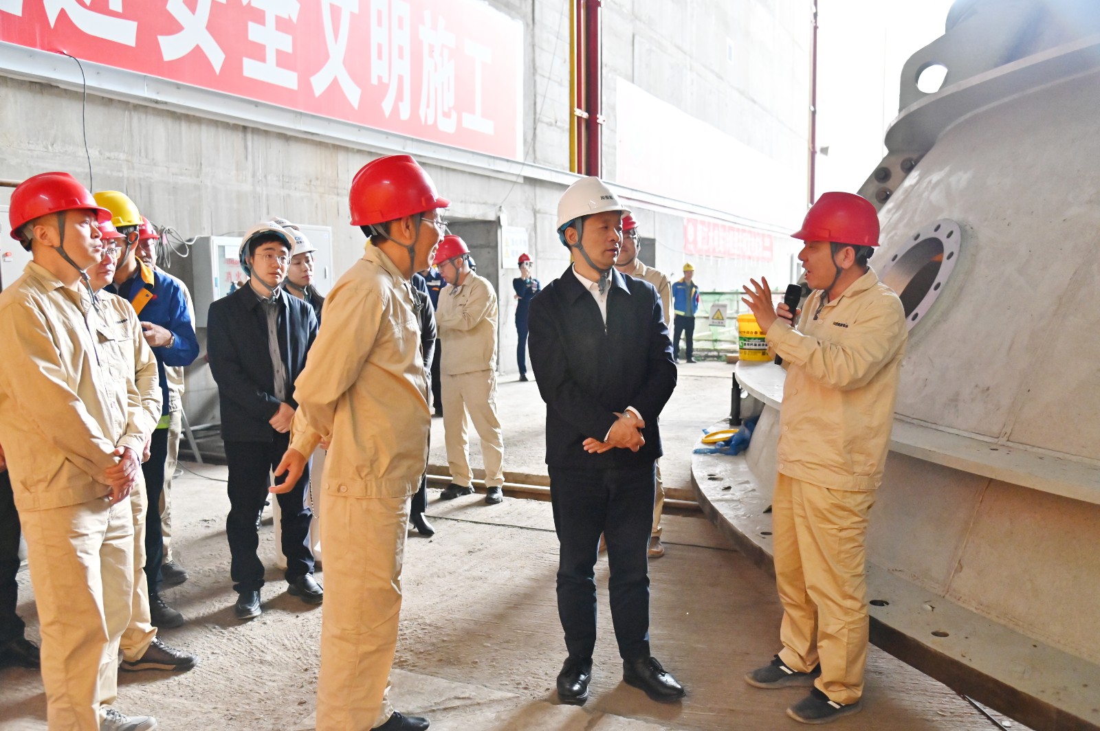 牟俊對銀江水電站工程建設(shè)取得的成績予以充分肯定,他強調(diào),銀江水電站施工作業(yè)點多面廣,施工人員較多,要清醒認識到當前安全生產(chǎn)和信訪穩(wěn)定面臨的形勢任務(wù),更好統(tǒng)籌發(fā)展和安全,扎實推進銀江水電站的平安建設(shè),確保年內(nèi)實現(xiàn)全部機組投產(chǎn)發(fā)電目標。