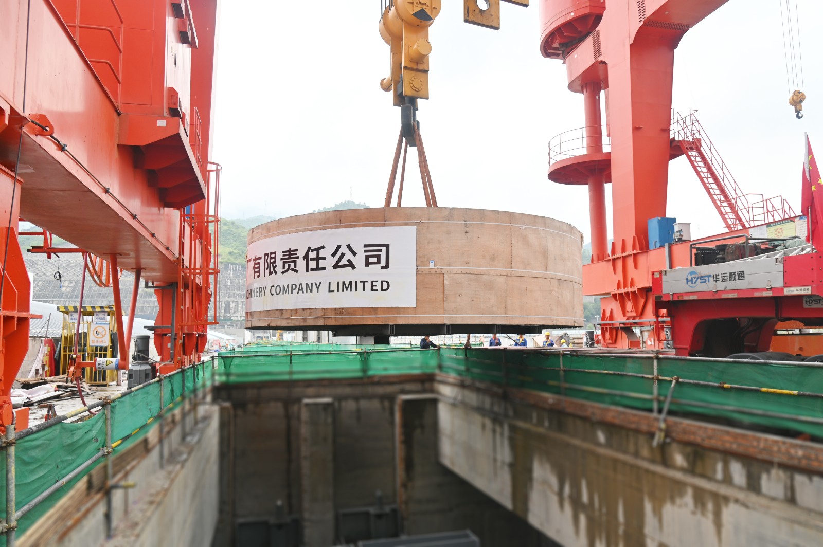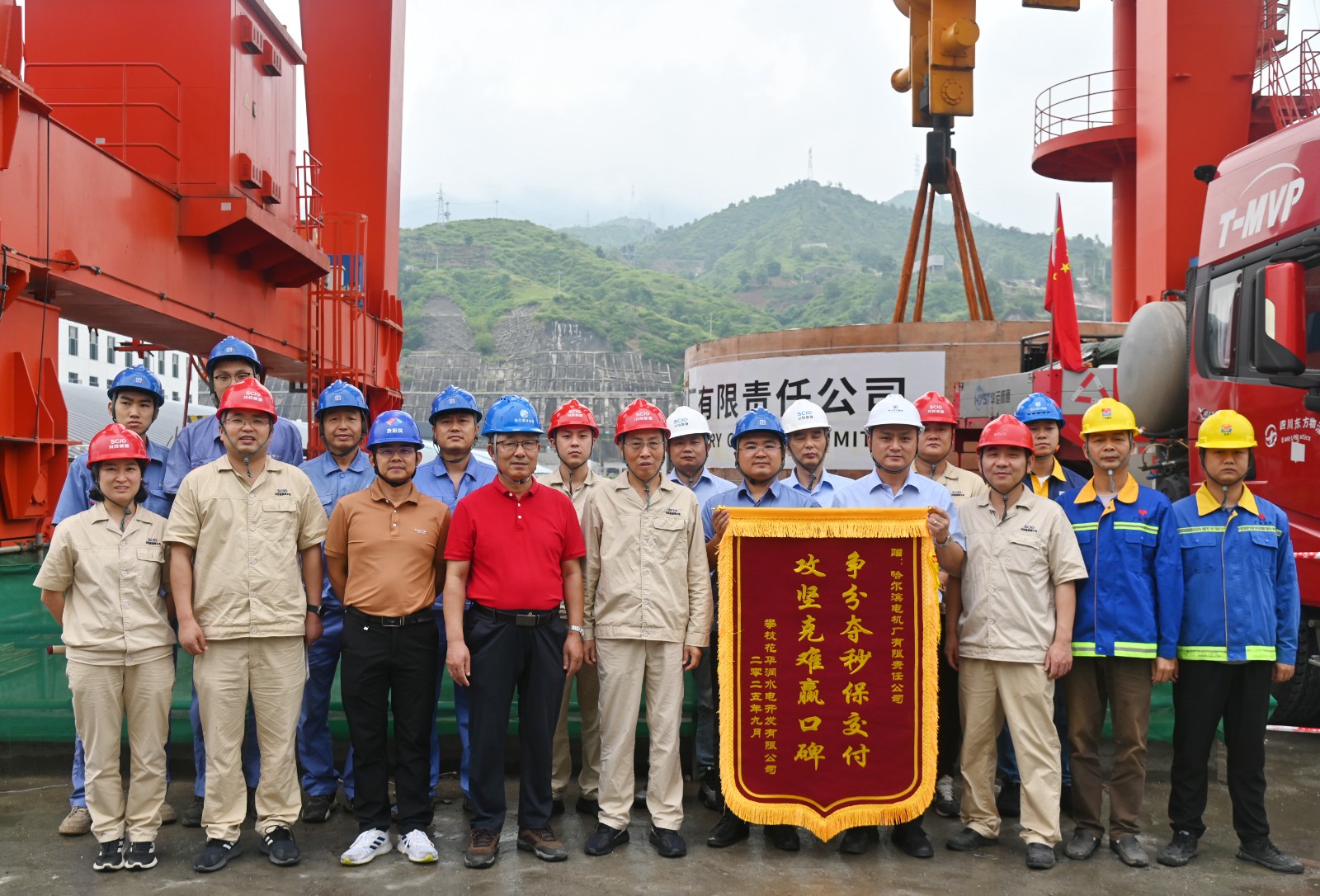 26日上午,現(xiàn)場各單位立即投入到吊裝前的準備工作中。攀水電公司全程跟進機電安裝進展,逐一確認安裝條件;施工單位技術人員按吊裝方案全面落實安全交底與技術措施,確保萬無一失;在各項準備工作全面就緒的基礎上,6號機組的轉(zhuǎn)子支架平穩(wěn)、精準吊裝就位。川投能源副總經(jīng)理、攀水電公司黨總支書記、董事長徐孝剛現(xiàn)場督導吊裝工作,充分肯定了哈電公司在本次極端條件下的運輸成績,并向哈爾濱電機廠有限責任公司授予錦旗,感謝其長期以來對銀江水電站建設的大力支持。