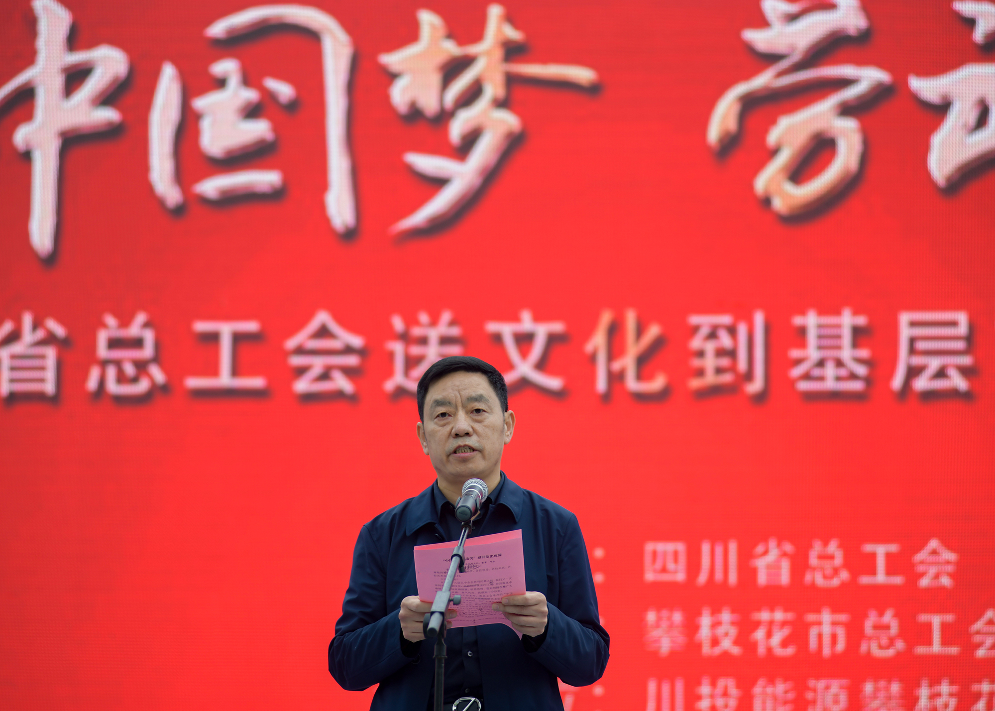 演出開始前,播放了川投能源宣傳片、攀枝花市東區(qū)宣傳片。鄧凱代表川投集團(tuán)致辭,對銀江水電站如火如荼的工程建設(shè)進(jìn)程表示欣慰。他指出,自銀江水電站建設(shè)以來,在各級政府和工會的關(guān)心支持下,銀江建設(shè)者秉承工匠精神,按照“開工不停工”的總體要求,逢山開路、遇水架橋、攻堅(jiān)克難、銳意進(jìn)取,取得了令人矚目的建設(shè)成果。川投集團(tuán)站在實(shí)現(xiàn)“兩個(gè)一百年”奮斗目標(biāo)的歷史交匯點(diǎn)上,正式展開了對標(biāo)世界一流的管理提升行動,努力打造具有國際影響力的一流國有資本投資集團(tuán),是貫徹落實(shí)黨的十九屆五中全會重要精神的最新部署,是開啟全面建設(shè)社會主義現(xiàn)代化國家新征程的時(shí)代行動,是凝心聚力勠力實(shí)現(xiàn)“銀江夢、川投夢、中國夢”的沖鋒號角!最后鄧凱代表川投集團(tuán)對各位領(lǐng)導(dǎo)、各位來賓和各位藝術(shù)家的到來表示熱烈的歡迎,對一直以來關(guān)心支持川投集團(tuán)改革發(fā)展和銀江水電站建設(shè)的各級政府、工會表示衷心的感謝!
