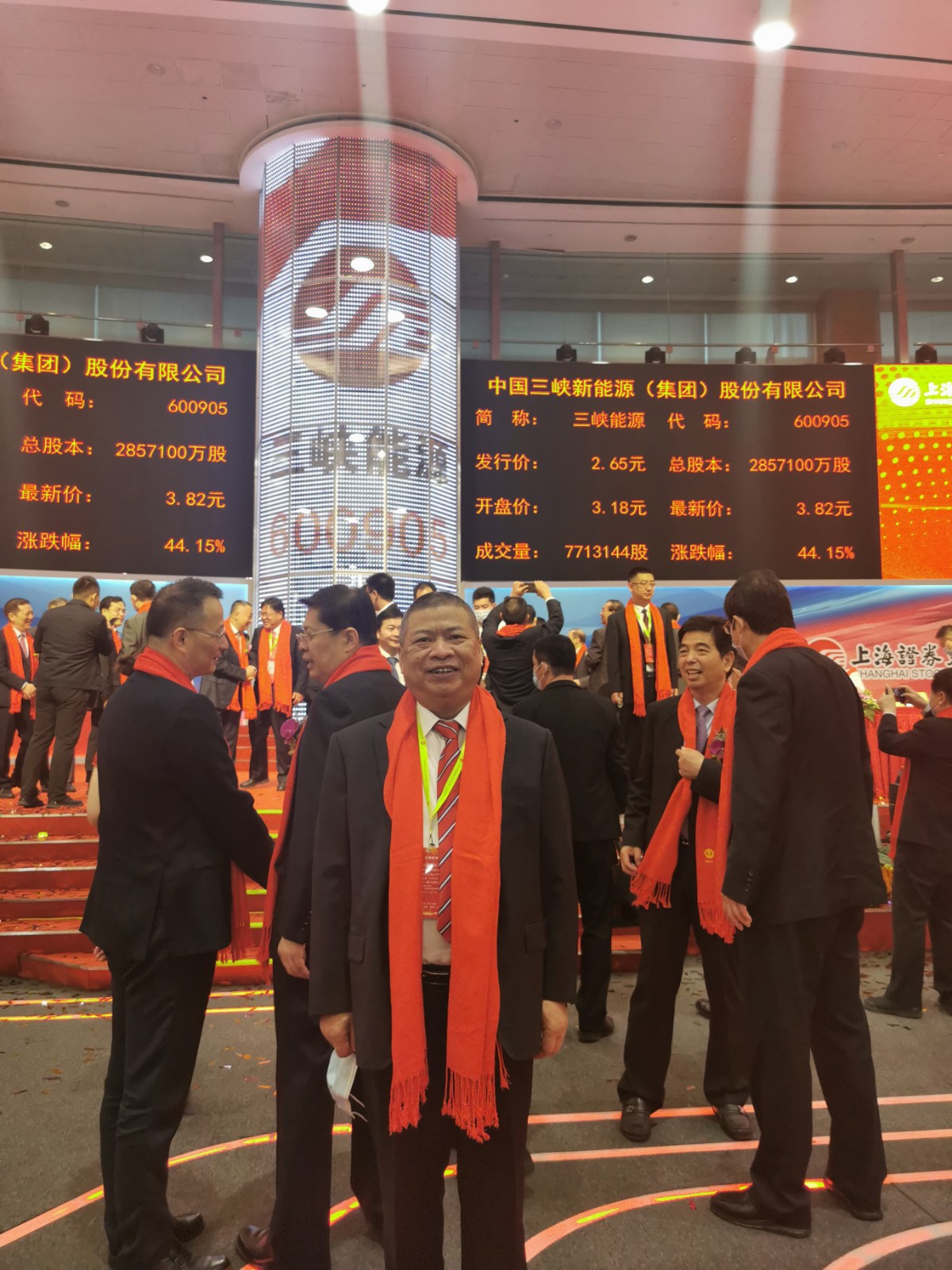 6月10日,川投能源參股企業(yè)中國三峽新能源(集團(tuán))股份有限公司(股票簡稱“三峽能源”,股票代碼“SH.600905”)首次公開發(fā)行A股股票在滬市主板正式掛牌交易。公司黨委書記、副董事長、總經(jīng)理?xiàng)詈樽鳛楣蓶|代表,與其它來自各行各業(yè)的代表一道,共同見證這一里程碑時刻。